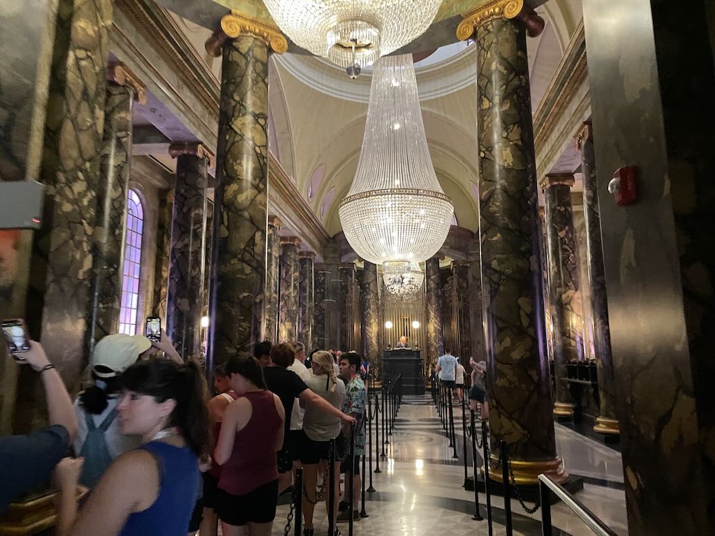 É ali uma das melhores atrações de todos os parques: o simulador Harry Potter and the Escape from Gringotts. Como é de praxe em Orlando, a atração já começa na fila, ou melhor, no “banco”, com tudo o que se tem direito: lustres opulentos e atendentes que vão te surpreender. Já o brinquedo em si é uma experiência totalmente inovadora: mistura simulador 4D com montanha-russa. Enquanto você estiver no carrinho com seus óculos vendo projeções gigantescas, sentirá fogo, água, aromas e muitas outras sensações. Não dá para perder.