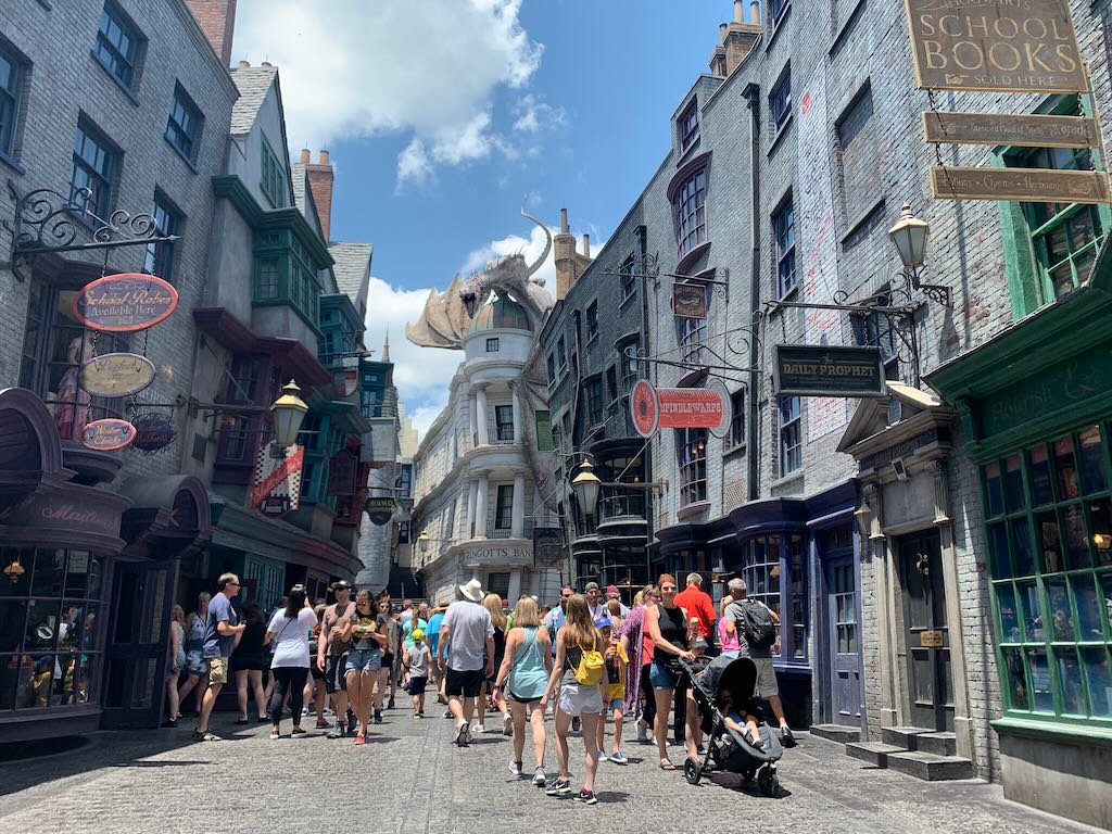Todas encantam, mas nada se compara à área do Harry Potter, a mais querida, concorrida (e lotada) região do Universal Studios Florida. Um muro de tijolos tal qual do filme leva ao Beco Diagonal, e aí se abre o verdadeiro mundo do Harry Potter, com dirieto a loja de varinhas mágicas que faz mágicas pela região, restaurantes inspirados no filme, cerveja amanteigada…