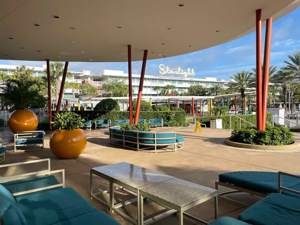 O hotel fica tão perto do parque Volcano Bay que a “montanha” que enfeita o parque aquático pode ser vista do Cabana Bay ou mesmo dos quartos. Além disso, dá para ir a pé para o parque – coisa rara em Orlando.
